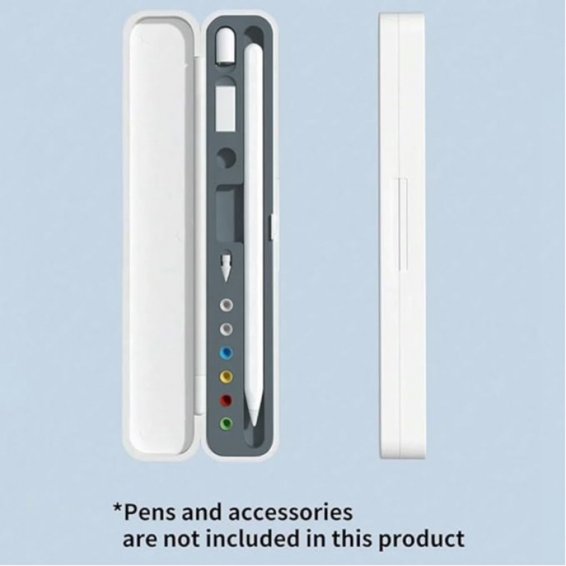 The storage case features built-in compartments tailored for each Apple Pencil accessory, ensuring everything stays organized and within reach. This design prioritizes convenience and accessibility while offering robust protection.