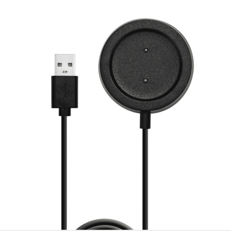 The product described is a replacement USB charging cradle specifically designed for Huami Amazfit GTS, GTR (42mm/47mm), and T-Rex smartwatches. Key features include: