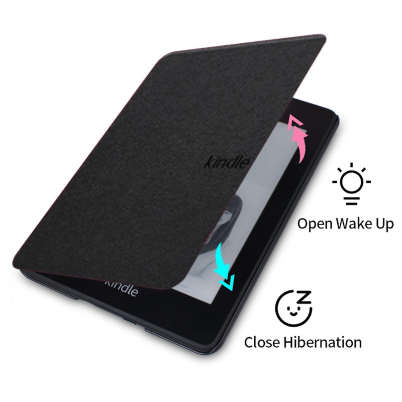 Automatically wakes the Kindle when the cover is opened and puts it to sleep when closed, conserving battery life.