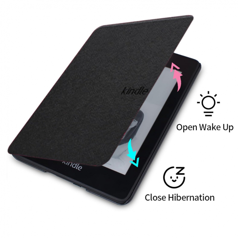 Automatically wakes the Kindle when the cover is opened and puts it to sleep when closed, conserving battery life.