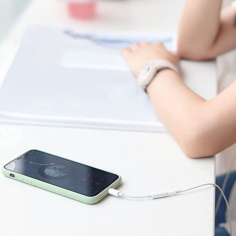 The adapter integrates a DAC (Digital-to-Analog Converter) and headphone amplifier within the Lightning connector, ensuring excellent audio quality comparable to traditional setups
