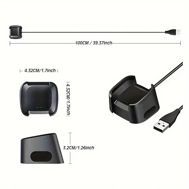 The charger described is specifically designed for Fitbit Versa 1, Versa Lite, and Versa SE smartwatches. It is not compatible with Fitbit Versa 2 or Versa 3 due to differences in size and design between the models. Below are the key features of this charger: