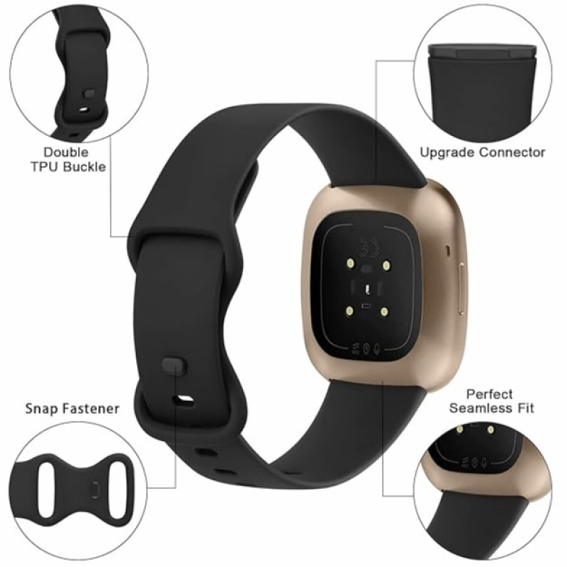 The replacement watch bands described are compatible specifically with Fitbit Versa 3, Fitbit Sense 2, and Fitbit Versa 4 smartwatches. These bands are not suitable for other models like Fitbit Versa 2 or Versa Lite Edition. Key features include: