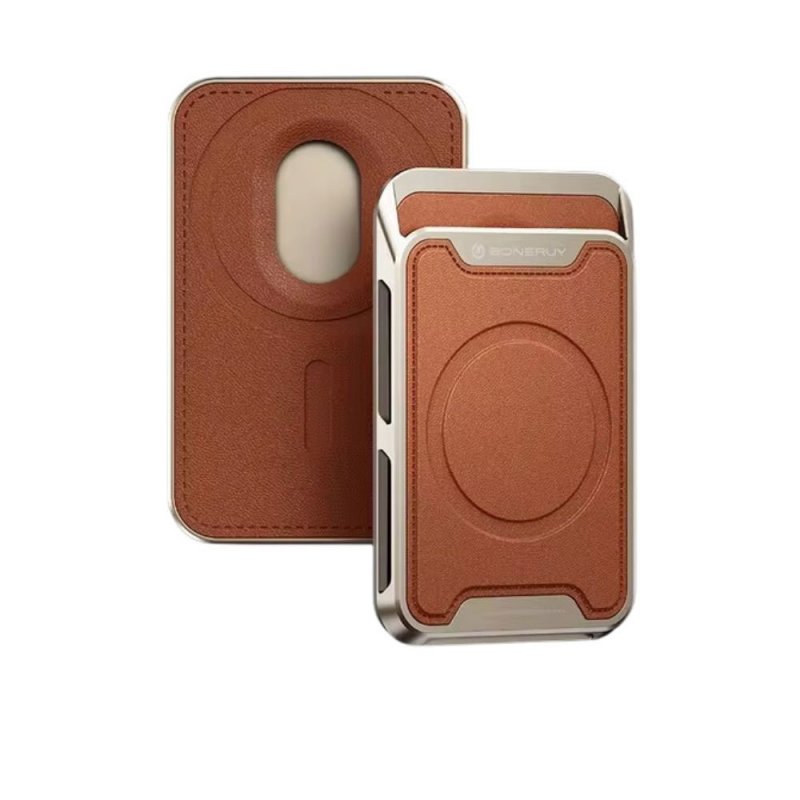 Experience the blend of elegance and durability with the EliteMag Wallet. Its aluminum structure ensures strength and resilience, while the leather exterior adds a touch of sophistication.