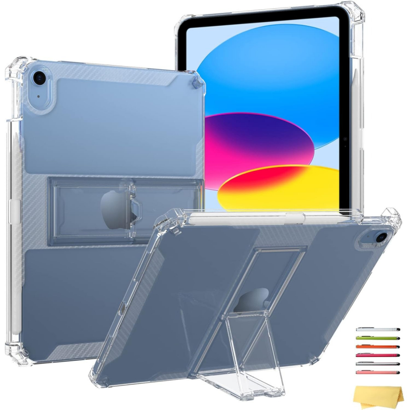 Adjustable bracket on the back for horizontal viewing or keyboard stand functionality.