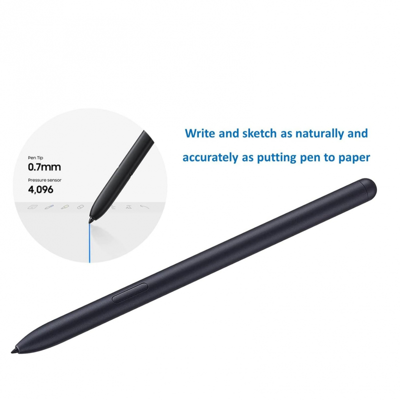 : 4096 levels, matching the original S Pen's sensitivity, enabling natural drawing and writing with varying line thicknesses.