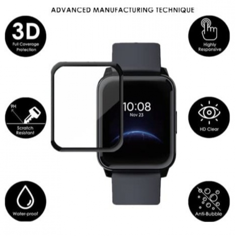 Material Composition: Made with PMMA (Polymethyl Methacrylate) and PU (Polyurethane), offering edge-to-edge protection for the curved screen of the Realme Watch 2.