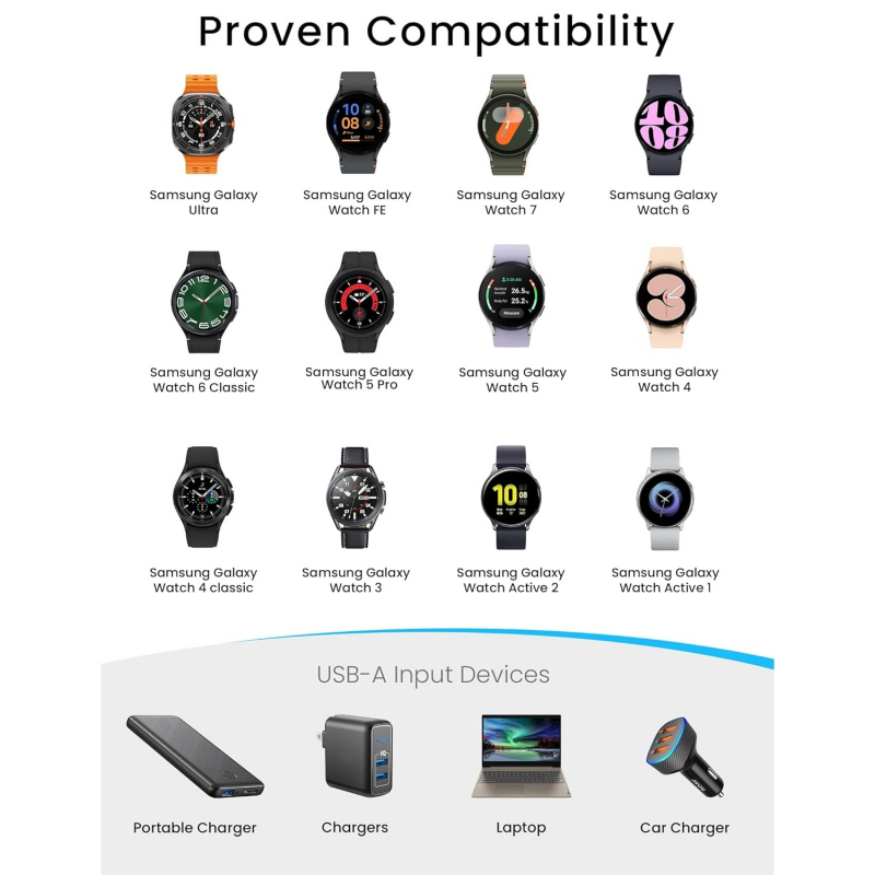 This charger is an excellent choice for users looking to replace or have an additional charging solution for their Samsung Galaxy Watches.
