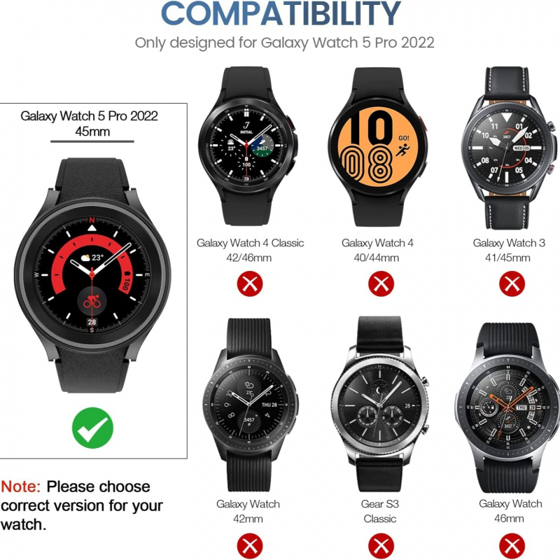 : Designed for Samsung Galaxy Watch 5 Pro series, ensuring a perfect fit for 45mm models.