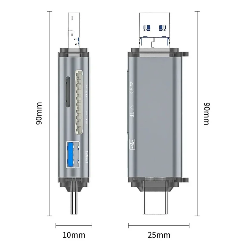 iCare ADS-306 Universal 6-in-1 USB / 8-Pin/Type-C Card Reader Adapter, SD TF Card Reader with U-Disk Support, USB 3.0 & 2.0 High-Speed Data Transfer for iPhone, Android, Tablet, Laptop