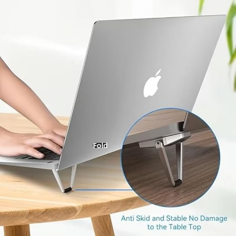 iCare Foldable Laptop Metal Stand with Cooling Mesh – Portable Ergonomic Laptop Holder, Anti-Slip, Lightweight & Compact for Home Office & Travel