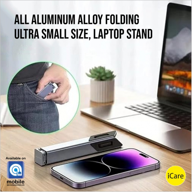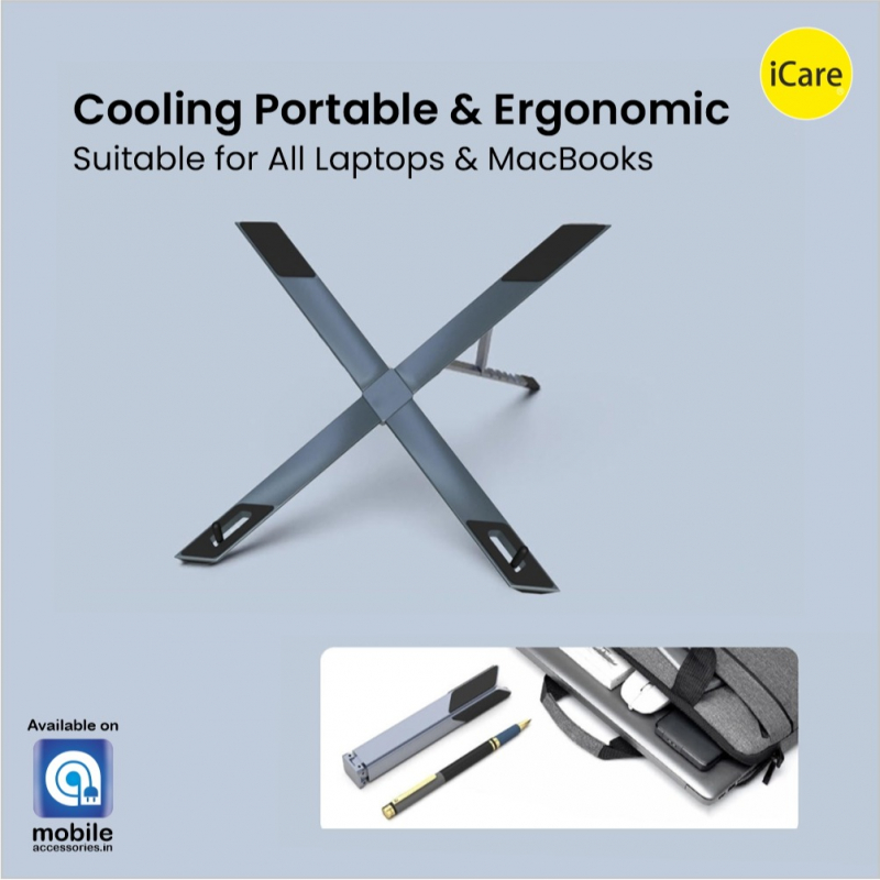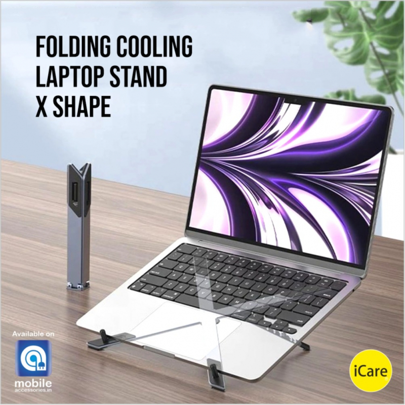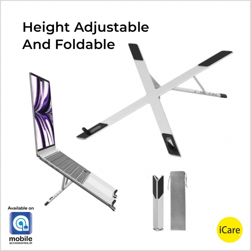 iCare - Foldable X-Shaped Portable Laptop Stand – Durable Aluminum Alloy, Height Adjustable, Lightweight (155g), Supports Up to 10kg, Fits 11”–17.3” Laptops