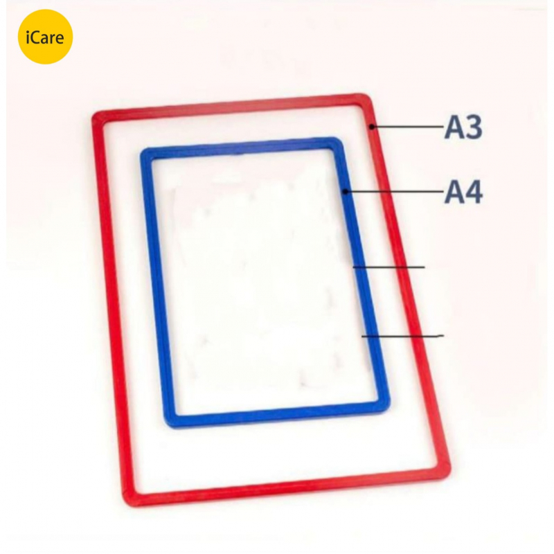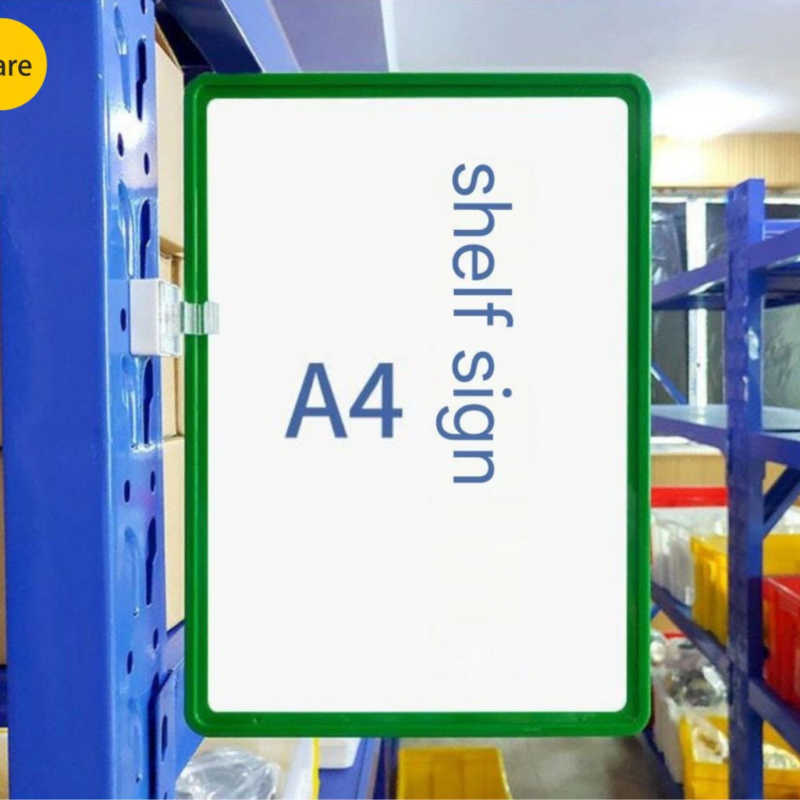 iCare Magnetic A4 Shelf Sign Holder – Advertising Display Frame with Strong Magnet Clip for Warehouse, Supermarket & Retail Rack Labeling (Green Frame, Vertical/Horizontal Use)