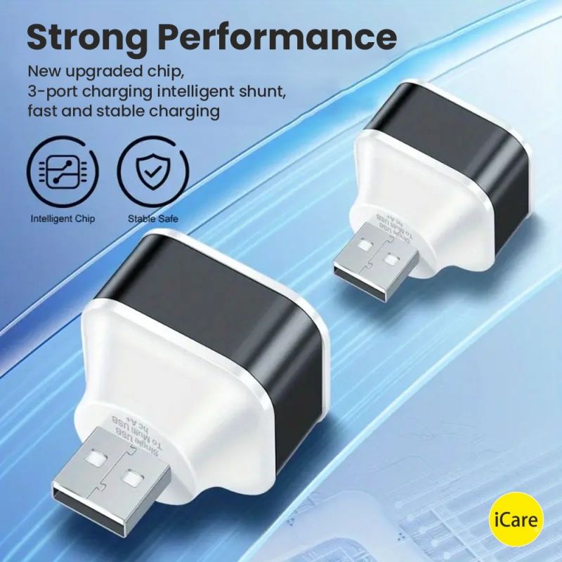 iCare Mini USB Hub Splitter | 1 Male to 3 Multi USB Expander | 2 USB Ports + 1 Type-C Port | Compact Sleek Adapter for Laptop, PC, Charger & Power Bank