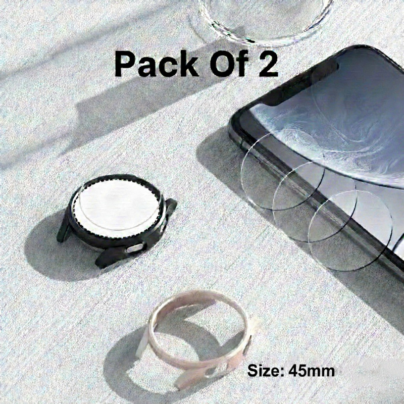 iCare Watch Round Glass Screen Protector Universal | Ultra Smooth Touch | Military-grade Protection | Scratch Resistant Tempered Glass | Bubble-Free Easy Install | Pack of 2(45mm)