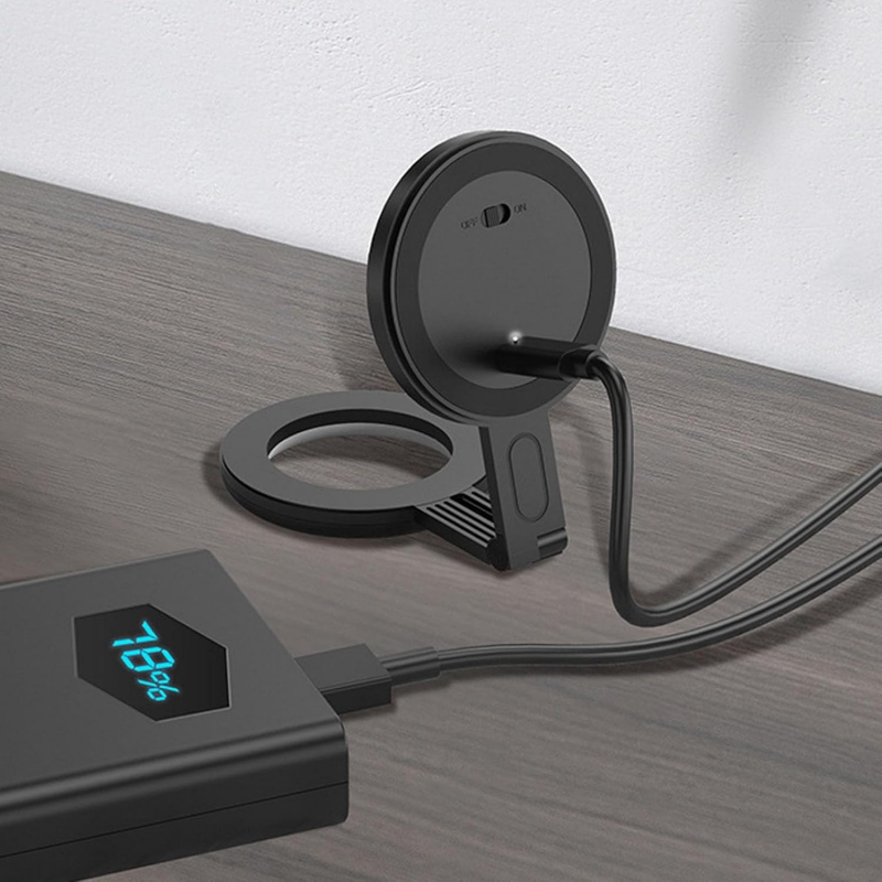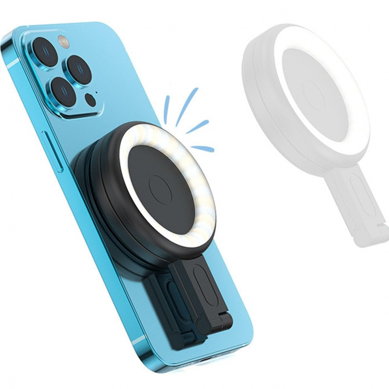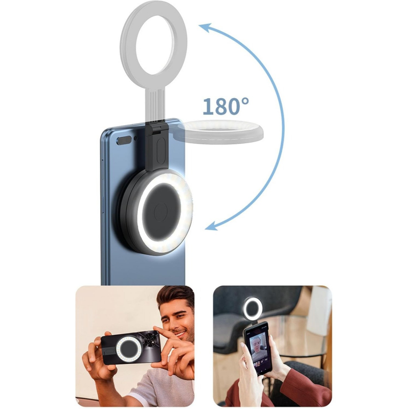 The magnetic design with a bracket allows easy attachment to any smartphone, tablet, or laptop.