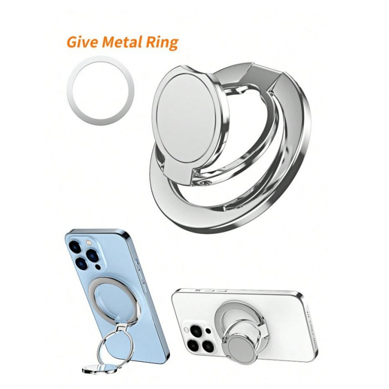 This phone ring holder uses a unique dual-sided magnetic system, allowing it to attach directly to magnetic car mounts or any magnetic surface—such as gym equipment, refrigerators, or metal walls—without needing to remove the grip from your phone. For non-metal surfaces, included iron sheets can be attached, enabling the holder to stick securely even to mirrors or walls.
