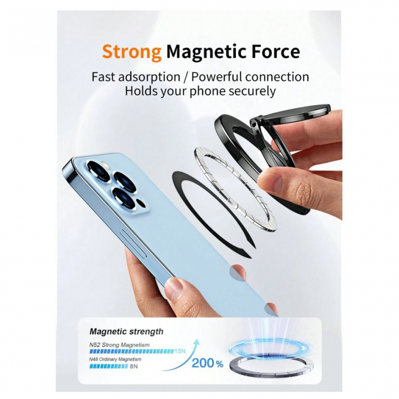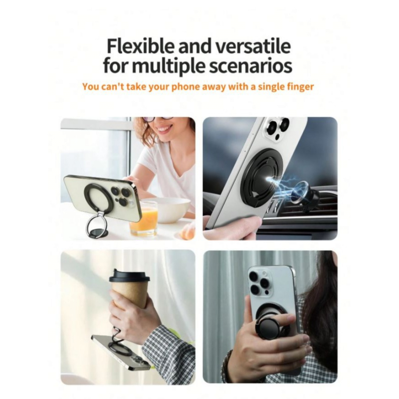 Designed for convenience, the magnetic phone grip can be easily removed by sliding it off, leaving no sticky residue. This ensures that wireless charging remains uninterrupted—simply detach the ring holder before charging and reattach it when needed. This feature distinguishes it from traditional adhesive-based grips, which often block wireless charging.