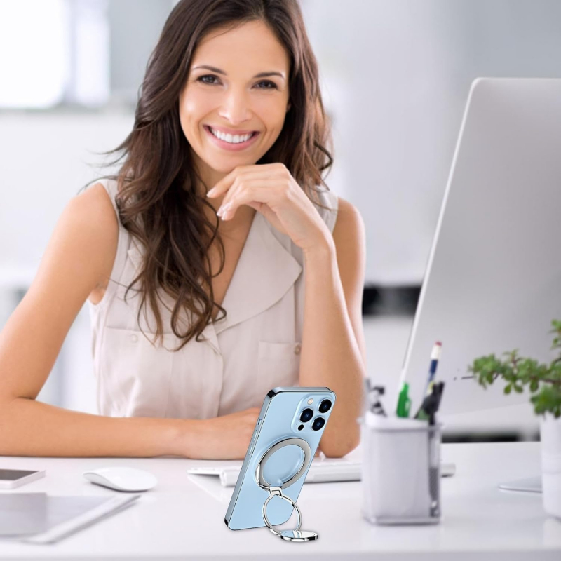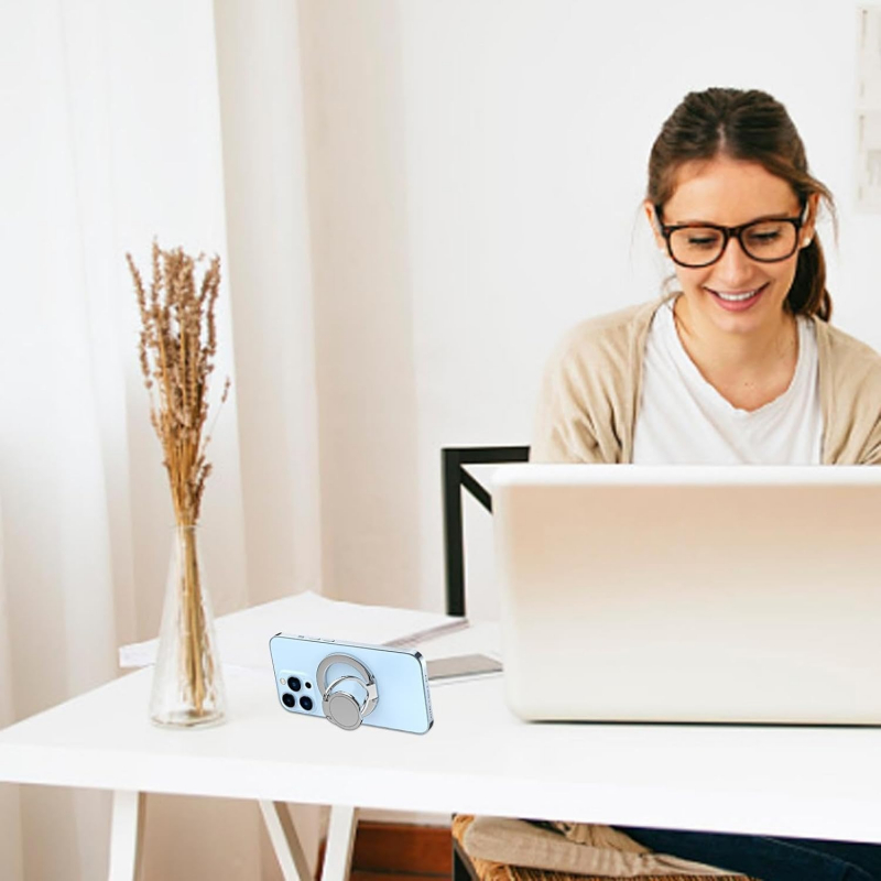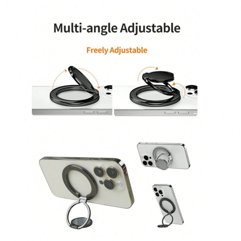 The ring holder combines a phone grip and a stand in a single, sleek accessory. Its 360° rotatable arm allows you to adjust your phone to any angle for hands-free viewing, supporting both portrait and landscape modes. This flexibility is ideal for watching videos, video calls, or reading, and the sturdy hinge ensures stability and durability over thousands of folds.